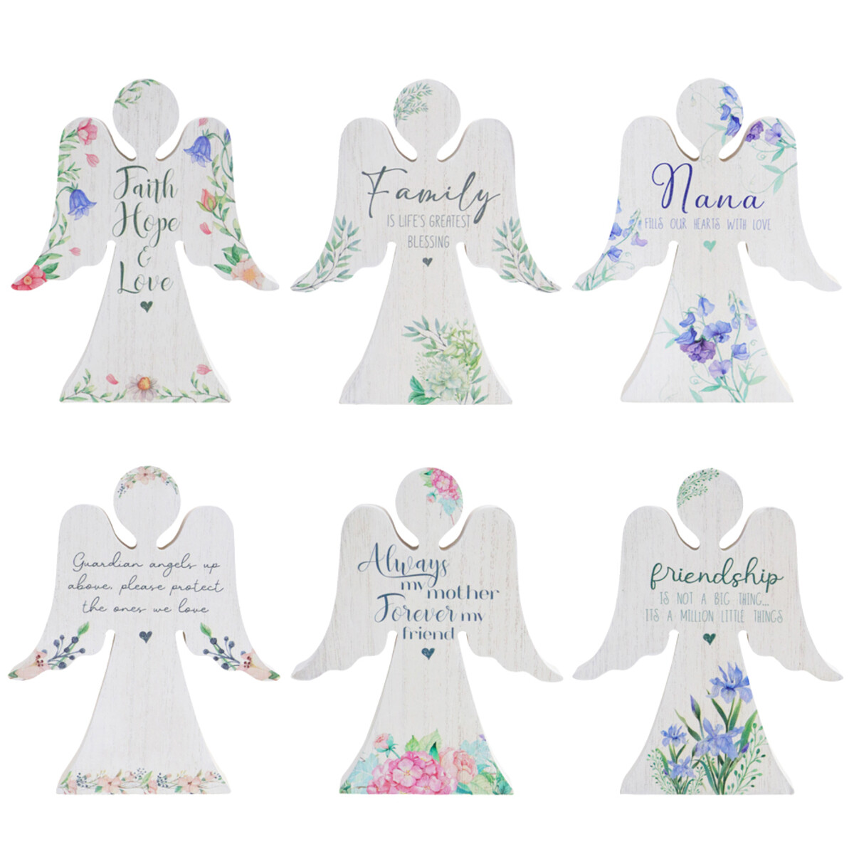It’s easy to see why angel themed décor is almost a perennial favourite. It sells year round - at Christmas, at funerals, for gifts and so on, making it a low risk buy-in for most shop owners who are exploring home decor. What makes this plaque set an instant classic is its beautiful arrangement of flowers, butterflies and simple quotes that can instantly add up to any décor.