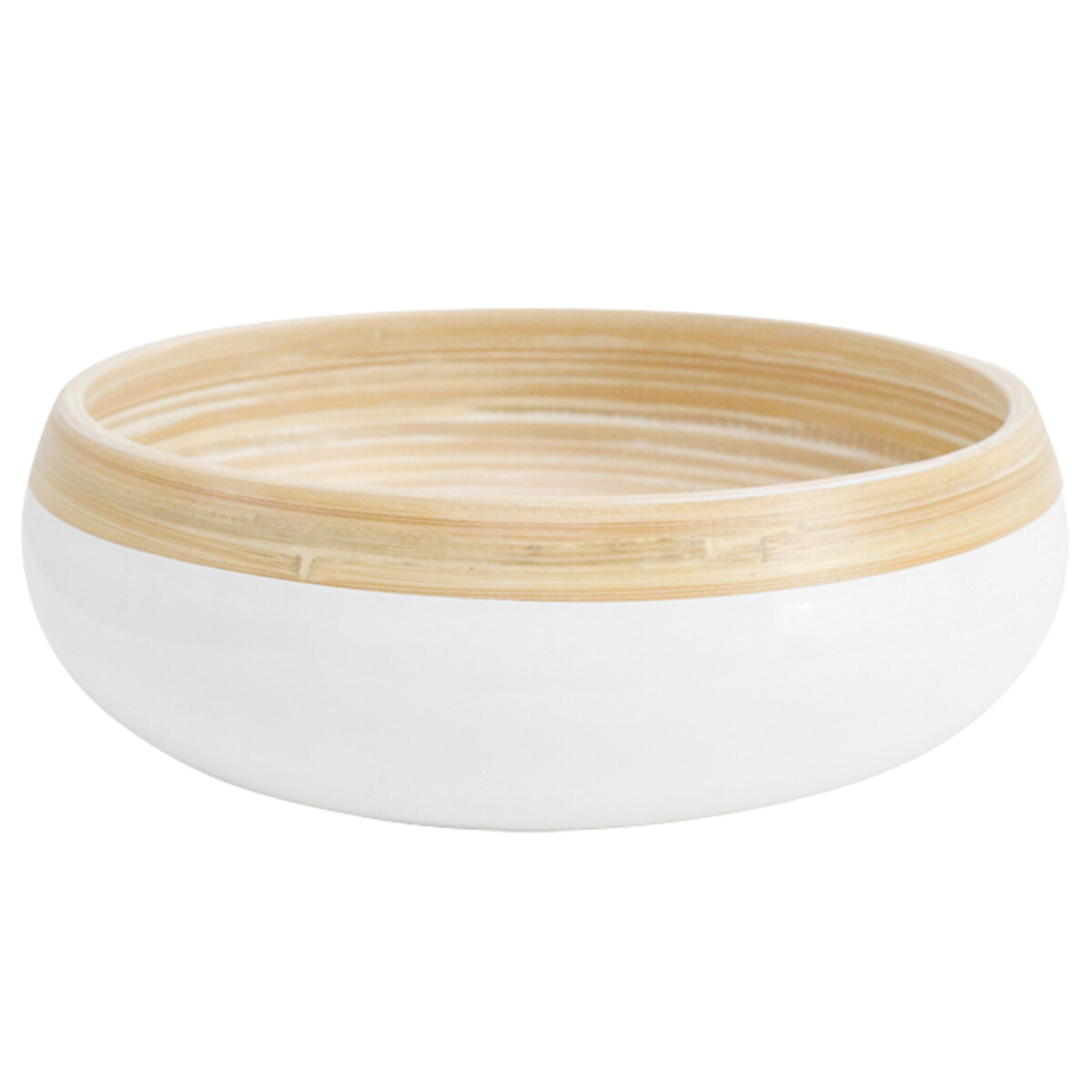 This low bamboo bowl is a real charmer - simple, clean lines with a natural finish that just works in any modern kitchen or on the coffee table. It’s 20x20x6cm so it sits nicely on a benchtop without taking over, and the combination of bamboo with a classic white base really pops. And since it’s natural bamboo, it’s sturdy and surprisingly lightweight - perfect for customers who want eco-friendly but stylish servingware.