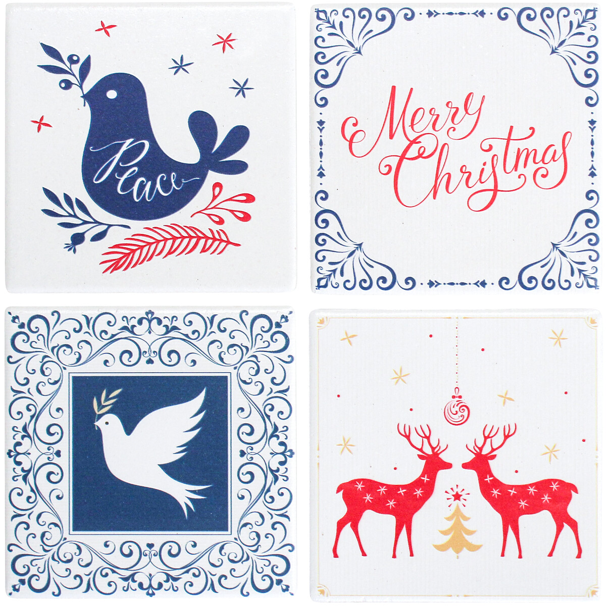The festive season is about nostalgia, and we can really see that coming through in our Vintage Christmas 2 Coasters. We designed these for people who like a bit of classic elegance in their homes, but we kept it fresh so they’re not just another ‘old fashioned’ coaster set. It's a nice balance of timeless and modern. Those Christmas motifs pop against the white ceramic, don’t you think? It’s all pretty classic stuff - peace doves, a bit of old school calligraphy, red reindeer… Customers might want to grab more than one if they’ve got a few coffee tables to dress up over the holidays or if they’re after an easy gift for workmates or neighbours.