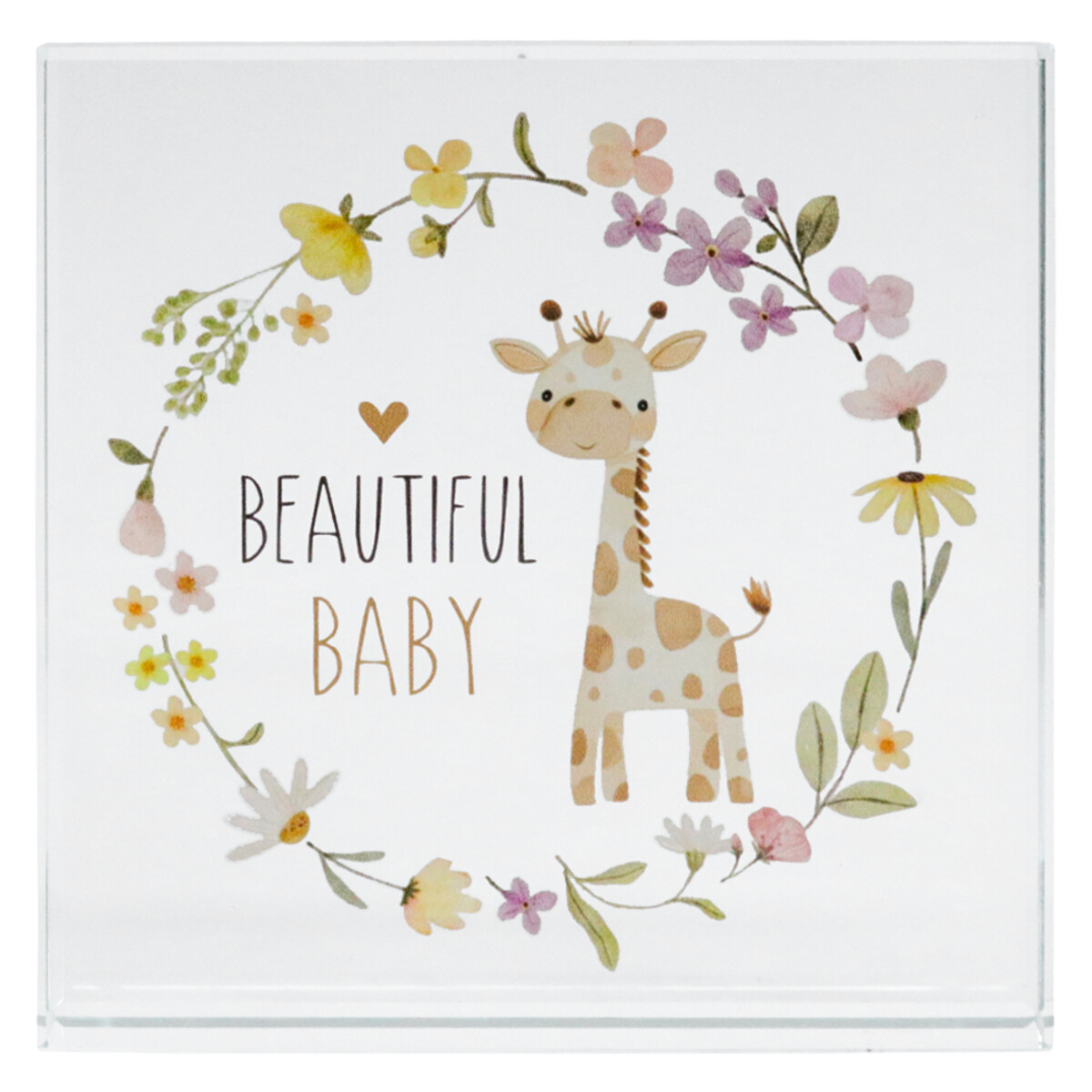 We have a soft spot for anything that celebrates new life, and this Crystal Glass Plaque does just that. The clear block design and glossy polish create an upmarket finish that's both delicate and sturdy, and the sweet giraffe illustration with the "Beautiful Baby" inscription will catch the eye of anyone searching for a special keepsake. Retailers looking to appeal to shoppers wanting something for a nursery or gifting to new parents will find these 10x10x2cm crystal glass plaques are sentimental without being twee.