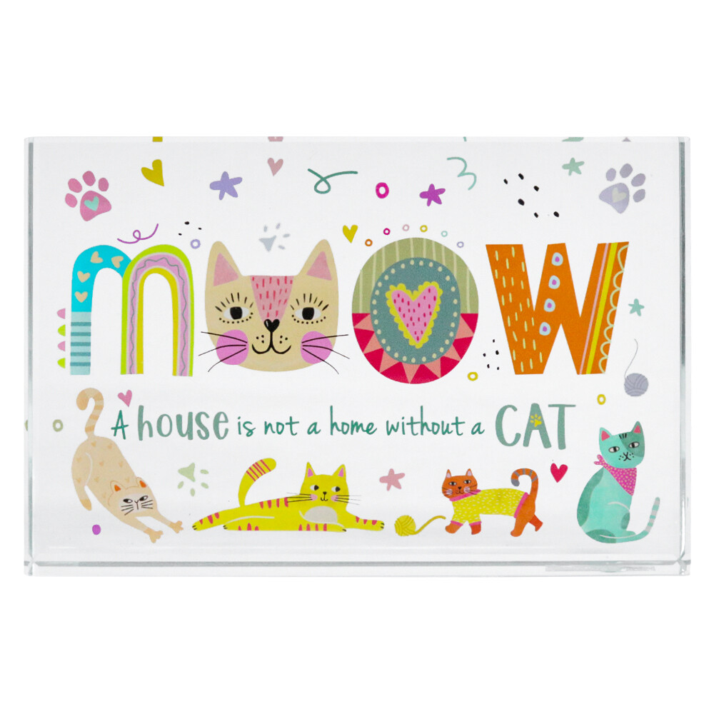 Our Crystal Glass Plaque Cat is bright, lively, and possibly the most playful way to show off a bit of affection for those four-legged feline companions. All those bold colours and patterned letters actually help anchor a display - it’s going to draw attention. We notice that the “MEOW” lettering with the stylised cat face right at the centrepiece is a favourite, while that phrase underneath usually gets more than one person muttering “it’s true” under their breath.