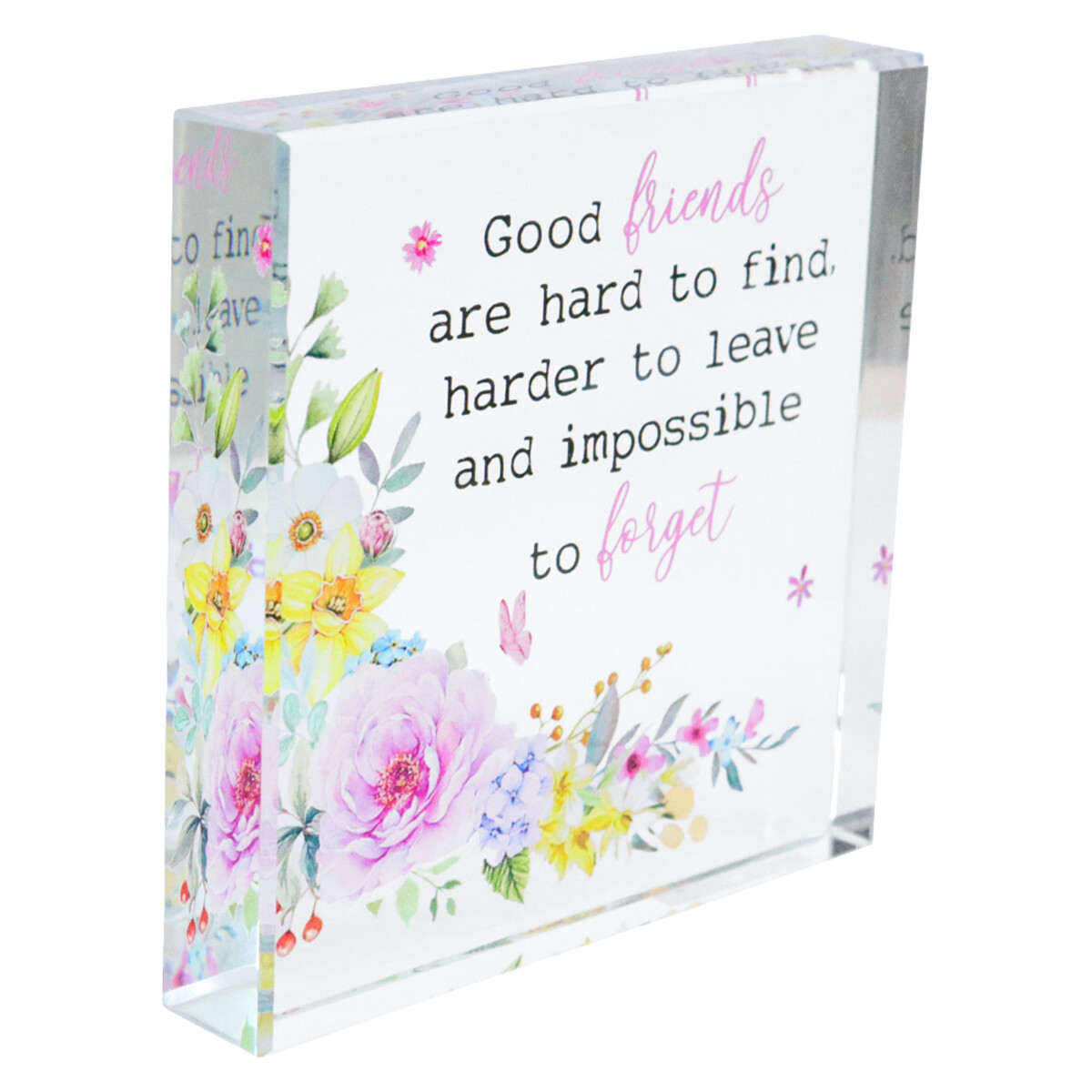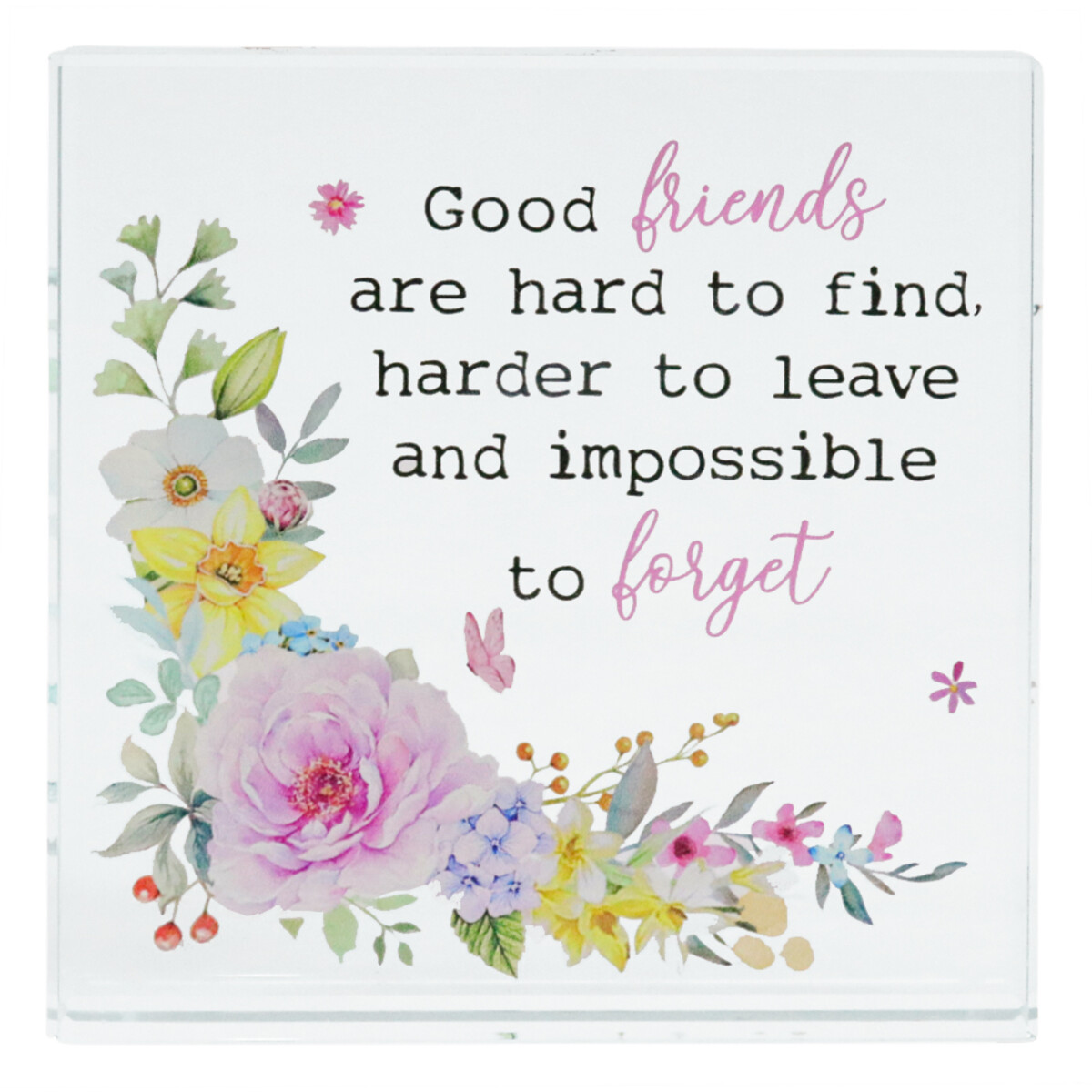 This Crystal Glass Plaque is an easy win for those who are looking to step up from friendship bracelets and friendship mugs and are maybe looking for - well, something that’ll feel like a thoughtful gift. The plaque does feel pretty premium with its quality crystal glass body and some of that is down to it being visually so neat and charming. That rectangular frame sits at 10x10x2cm - so it’s not overwhelmingly large but not one of those tiny trinkets either - and the painted wildflowers on the front make it more approachable. It doesn’t try too hard which - well, you know how sometimes items do.