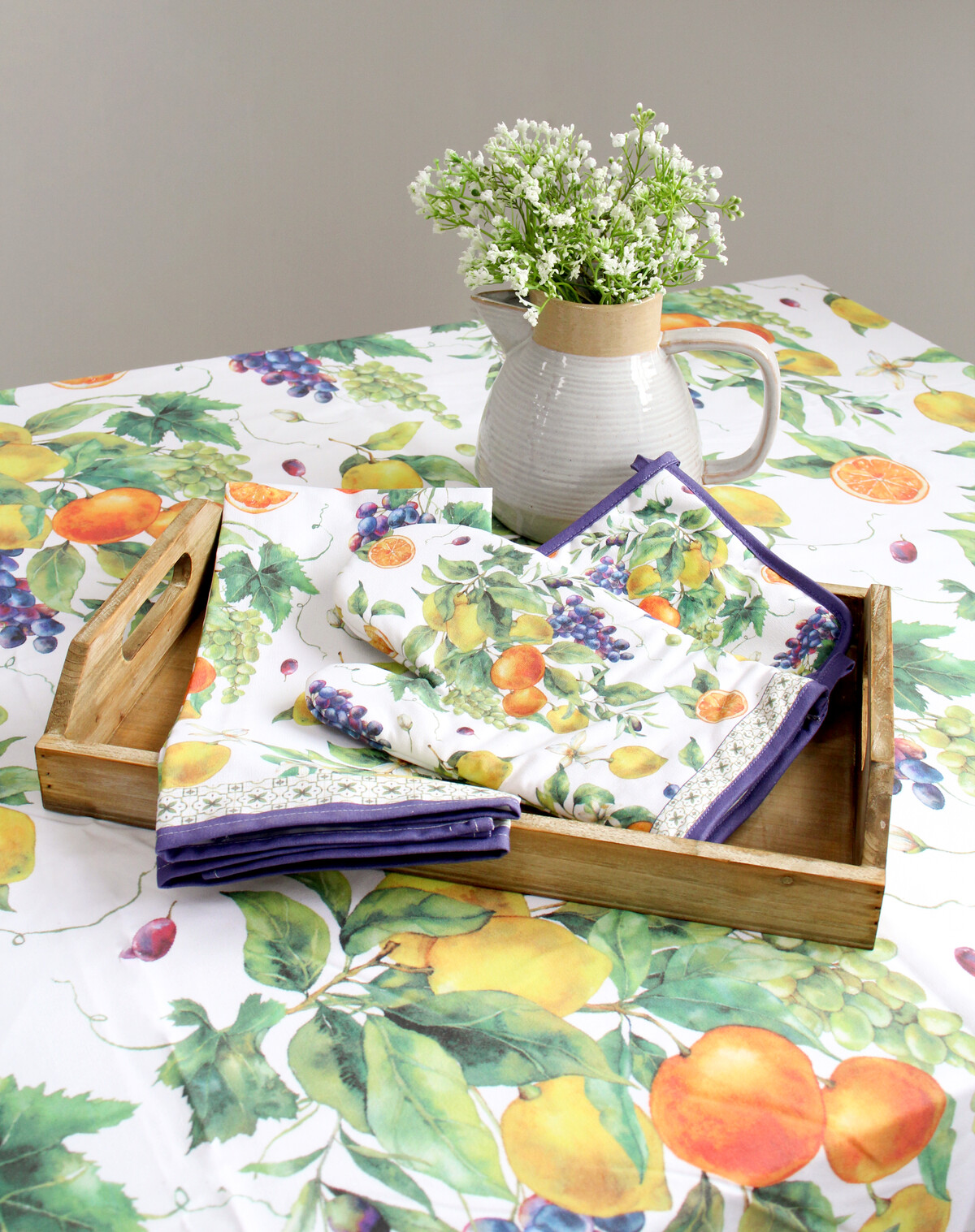 The Double Glove Mediterranean is kind of hard to miss, isn’t it? And that’s not at all a bad thing. It was designed to catch the eye with its hand-painted inspired fruit motifs and fresh Mediterranean pattern on a white base. It’s honestly a lovely bit of kitchen linen – something colourful, vibrant, and almost a little artsy in a way. The padded finish is great for handling hot trays and cookware and it’s fairly long as far as oven mitts go (at 18x88cm). That means both hands are safe no matter what you’re grabbing.
