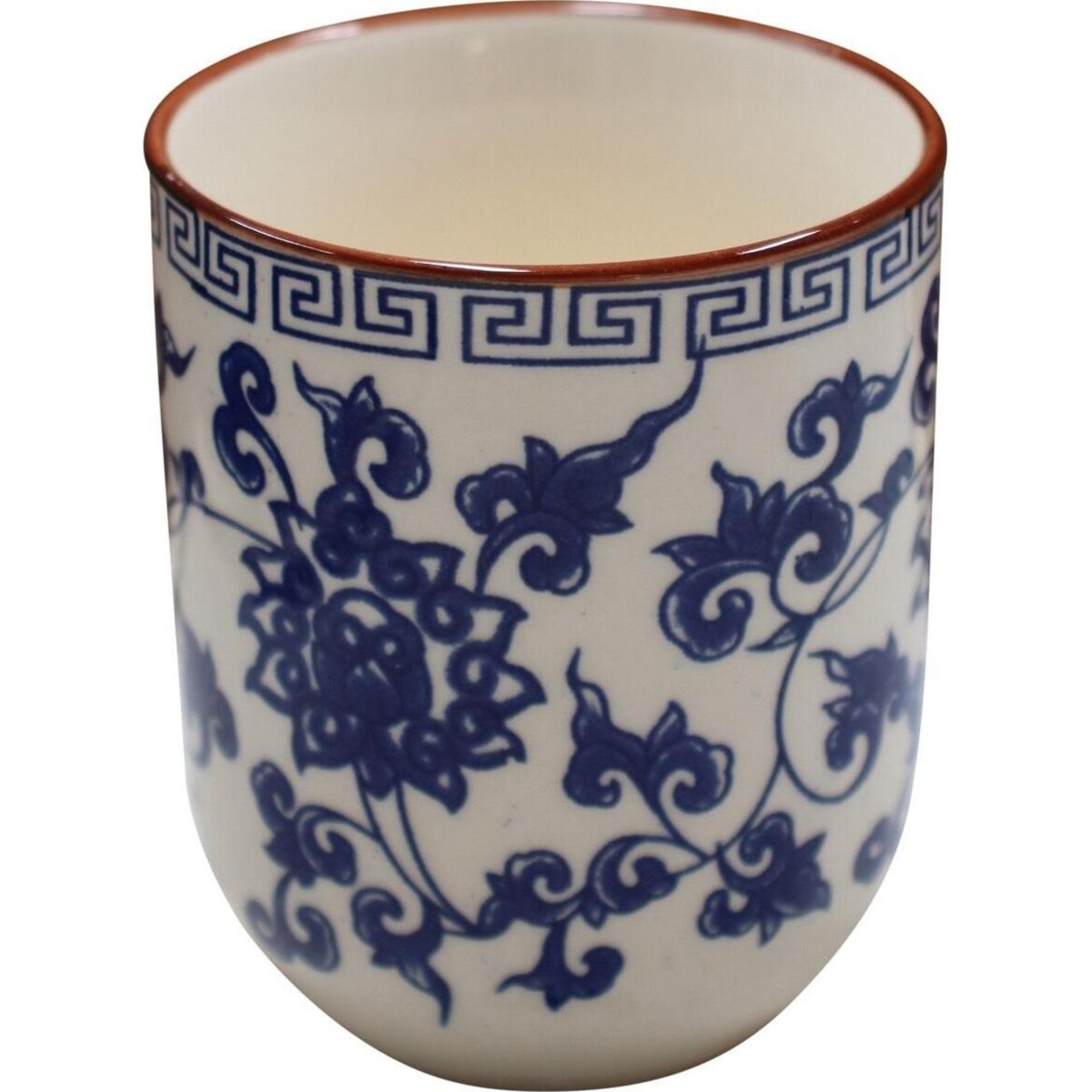 So, our Jappa Cup Elegant Blue. This one just works in every kind of shop setting and we see it move across all price-points. At 6.5x6.5x8cm, it’s not your average novelty mug - it is handmade ceramic that does a better job as a styling accent or gift than most. It’s neutral - thanks to the soft blue - but is also a bit of a statement piece. The floral-like motif is chic and classic, not garish at all.