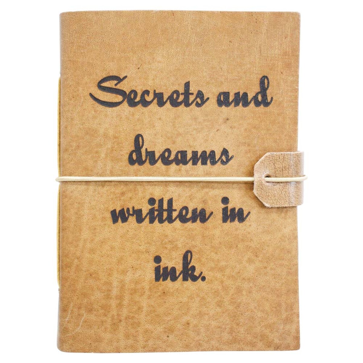 Discover the charm of craftsmanship with the Leather N/Book Written in Ink, a distinguished addition to any homeware or giftware collection. Exuding a rustic allure, this journal captivates with its elegant cover featuring the heartfelt inscription "Secrets and dreams written in ink," inviting users to pour their thoughts onto its pages.