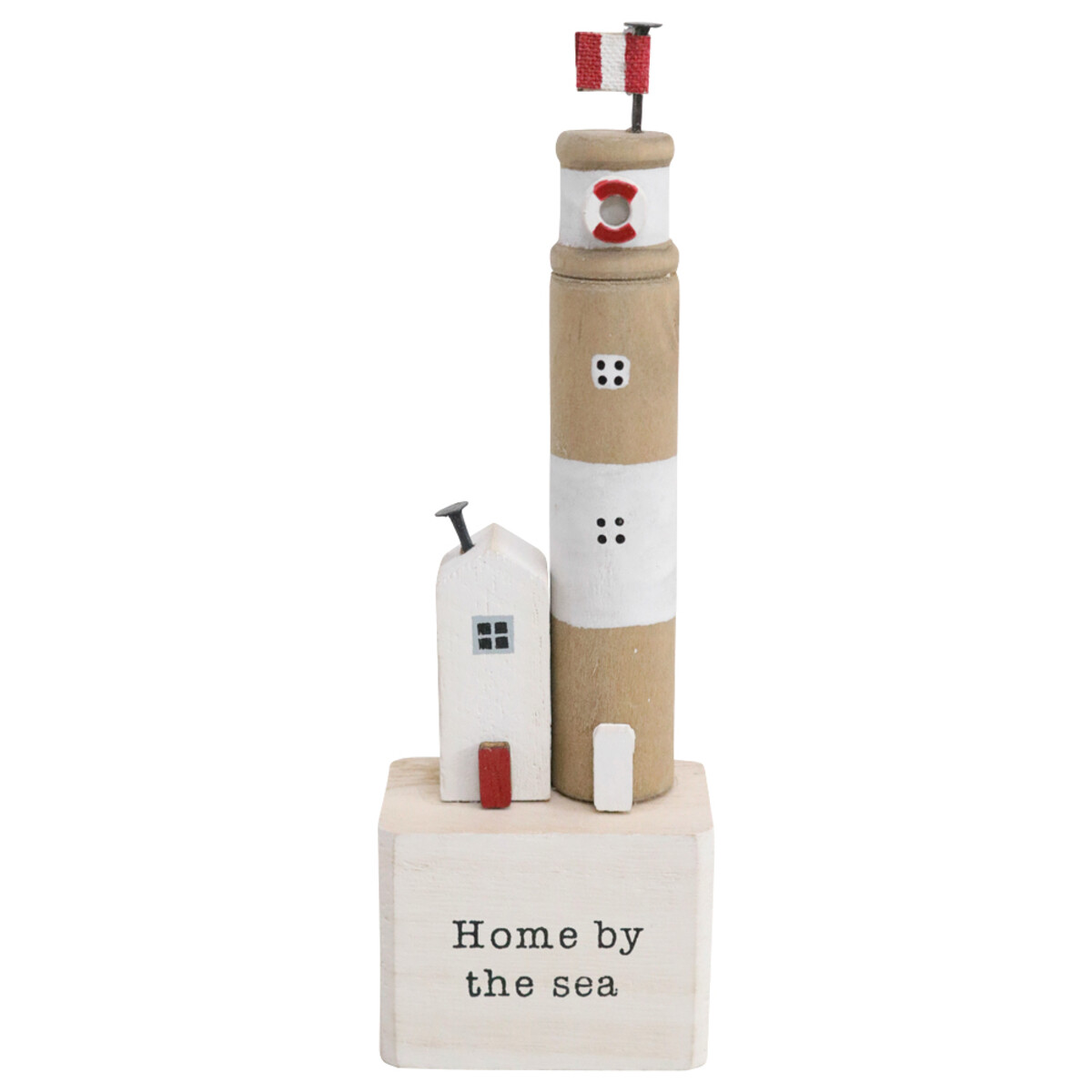 This Lighthouse Village Home is one of those little nautical centrepieces that’s easy to work with - easy to pull out when you need something for a simple candle-and-seashell arrangement or as part of a coastal bookshelf ensemble. The house and lighthouse are carved in pine wood and you’ll get that subtle matte finish that rustic pieces tend to go with, which is always a bonus when you’re trying not to overdo the “beach” theme. It’s compact (5x3x16cm) so you can fit it just about anywhere and because it’s hand finished, there’s this authentic take to it that we find almost always works well with cottage-style or minimalist pieces. The base comes in a light tan colour so the entire set fits into practically any white or pastel backdrop but the stripes on the lighthouse and that “Home by the sea” phrase up front give it enough vibrance to stand out from your regular candle-and-shells arrangement.