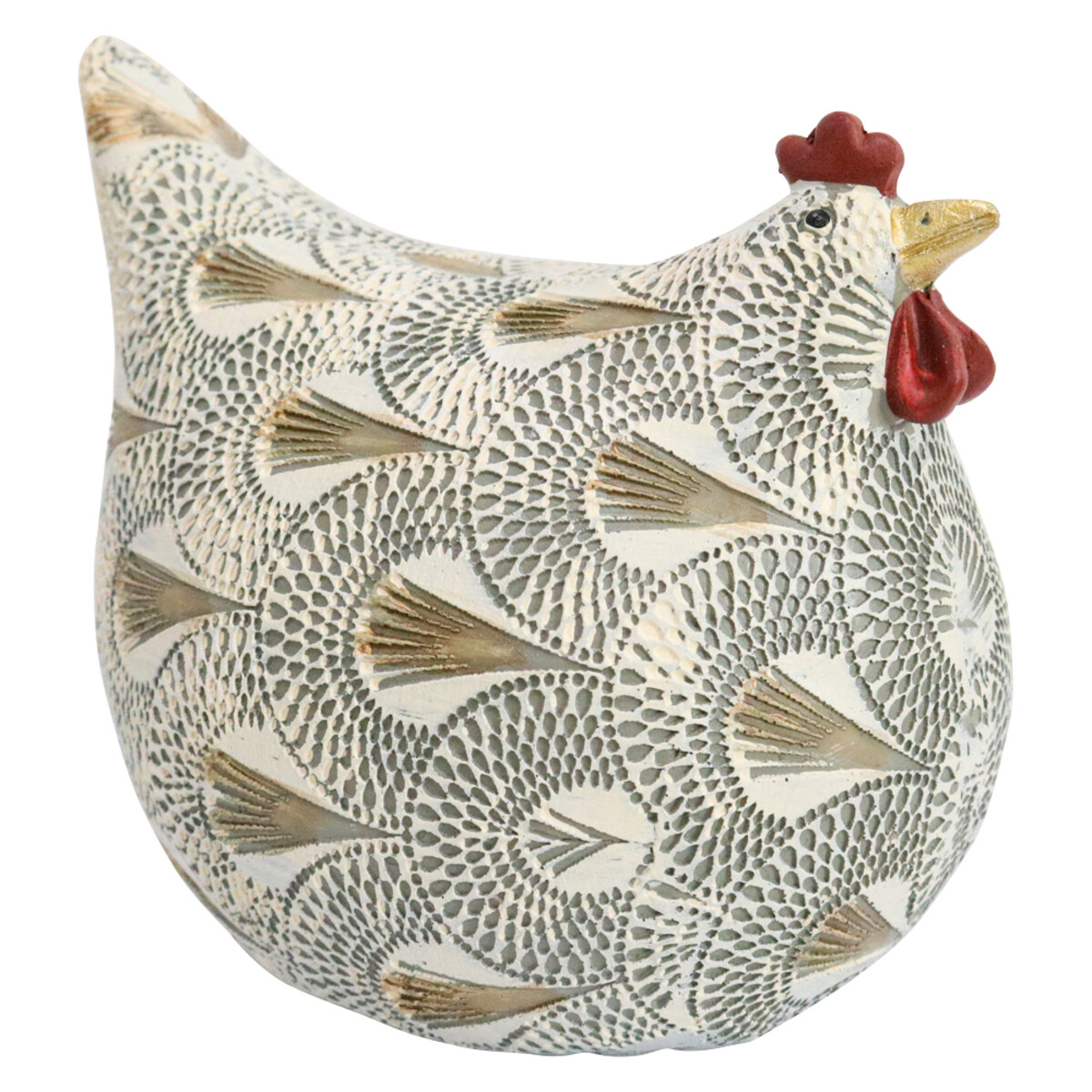 We think this Pattern Hen Large is probably one of the most delightful pieces we’ve brought in for a while. But maybe that’s just us being a little too passionate about clever designs - the thing is, there’s something about it that just works in pretty much any home - it feels right at home on the kitchen bench and in the kids’ play room, and even that awkward spot near the front door that nothing seems to look right on. It’s because it’s subtle but has this really nice intricate pattern with a bit of texture you can see from across the room. Nice neutral tones and muted red and yellow so it doesn’t stick out like a sore thumb - it gently brings a unique feel into any style decor. We love resin too because it holds detail well, isn’t heavy, and lasts years. The size is pretty great at 14x10x12 cm - it’s not tiny or overwhelming, and feels like it has presence no matter where you put it.