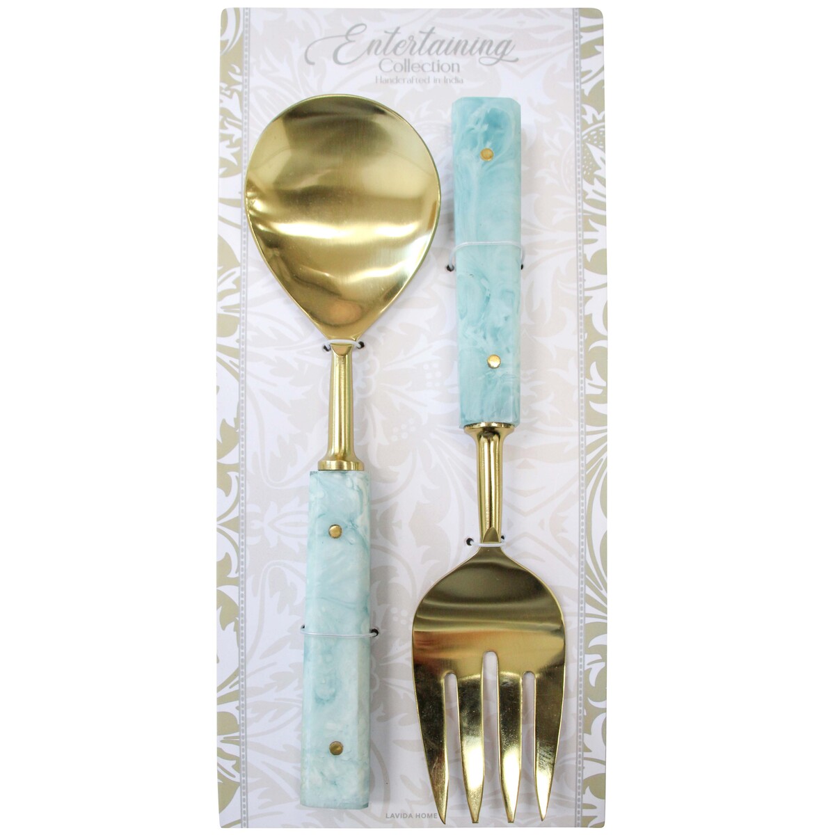 Beautiful enough to be put on display while practical enough for everyday use, one enjoys the convenience and ease that comes with having this well-made server in any kitchen or buffet arsenal. These salad servers exude sophistication and style. Our servers are a perfect combination of aesthetics and function. Crafted from premium materials, they offer a stylish look as well as durability for everyday use. The eye-catching blue marbleised pattern is carefully made to enhance the visual appeal of any dinner table. These server utensils give a secure grip on any type of food and won't let you down when it comes time to serve up an unforgettable feast. Embrace the beauty and practicality of these exceptional salad servers and infuse every meal with an air of elegance and charm.