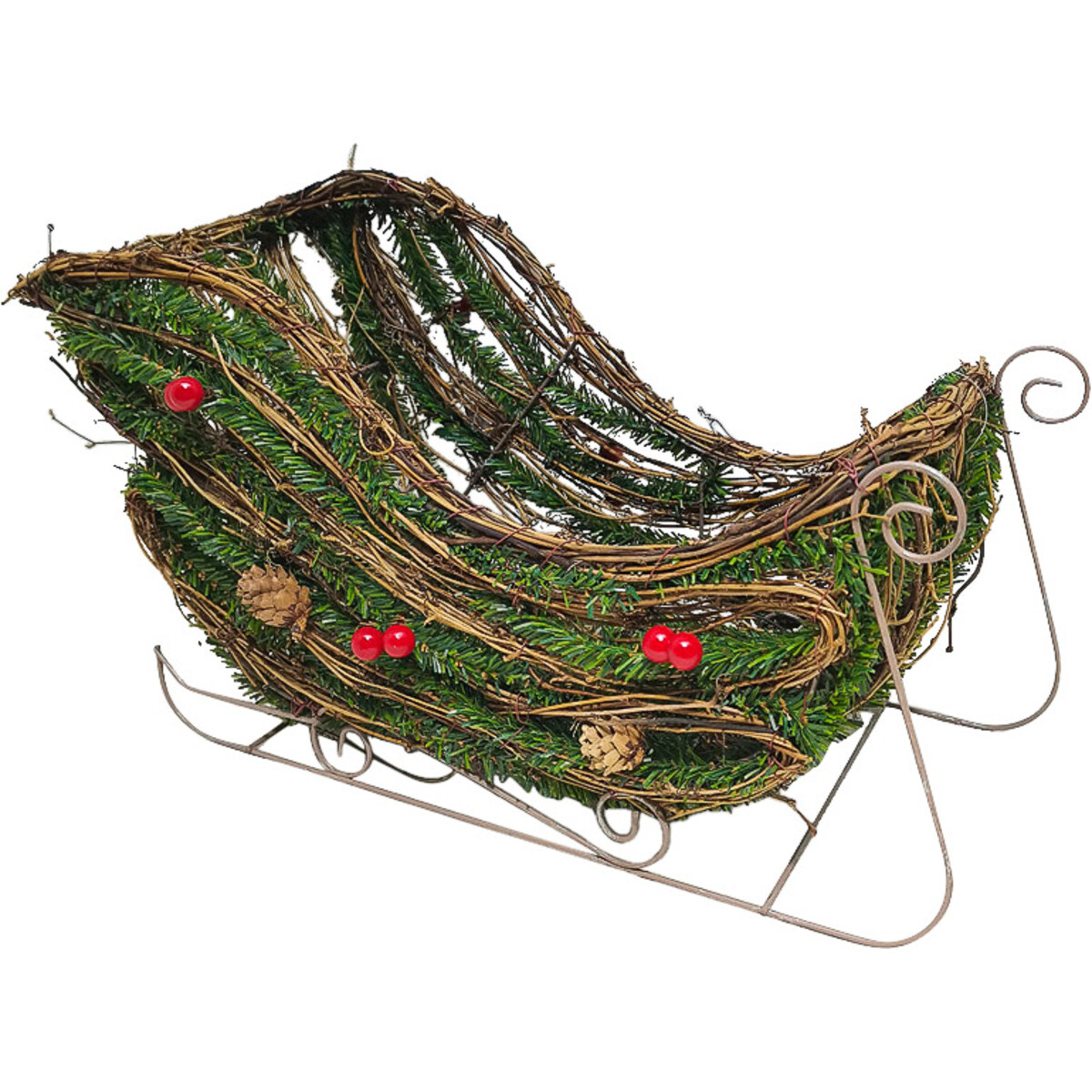 Alright, check out our Sleigh Traditional centrepiece. It’s not your run-of-the-mill seasonal display - it’s actually a bit of a conversation starter. The rustic design, with that real rattan woven into a classic sleigh shape, is proper eye-catching. And the pine sprigs, poppy red berries, and those little cones catch the light just right in a shop window or as part of an in-store display.