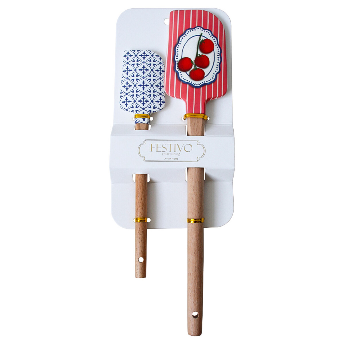 Our Spatula Set Mediterranean is for retailers who like to have a bit of fun with their kitchenware range, especially if they’re still getting used to the wave of Mediterranean décor taking over this year’s design trends. This set is just under 35cm long and features two spatulas - one large and one small, each with a unique pattern on their silicone heads. The larger spatula brings red and white vertical stripes (stripes really are everywhere right now!) and a beautiful plate motif front and centre, while the smaller spatula is cool blue with white geometric tilework.
