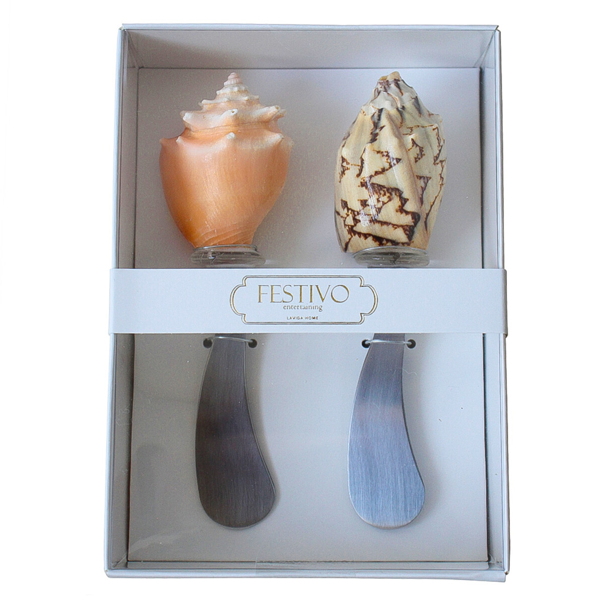 We’ve noticed how that natural shell look works so well with beach house decor but these are elegant enough for contemporary environments too. The range of colours is subtle but striking, and it’s interesting how different these spreaders can feel depending on the accessories around them. They come in a white gift box with branded “FESTIVO entertaining” bands, but keep in mind that packaging doesn’t count towards credit claims.