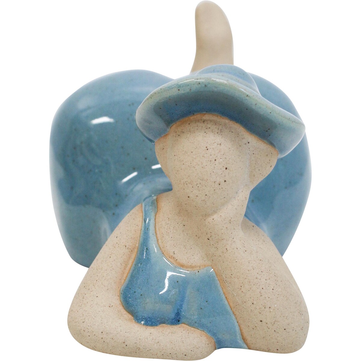 At 20.1x9x8.1cm, this sculpture fits perfectly on a hallway console or as a feature piece amongst books and vases - we think she adds just enough whimsy without feeling over the top. The soft blue swimsuit and hat hint at coastal living but honestly, this colour palette works well with rustic, boho, and modern interiors too.