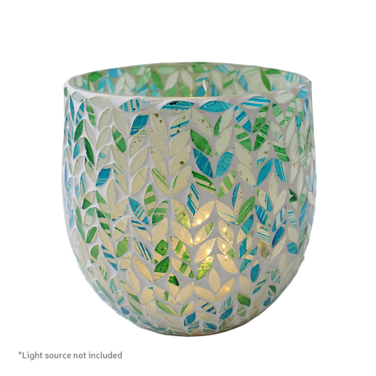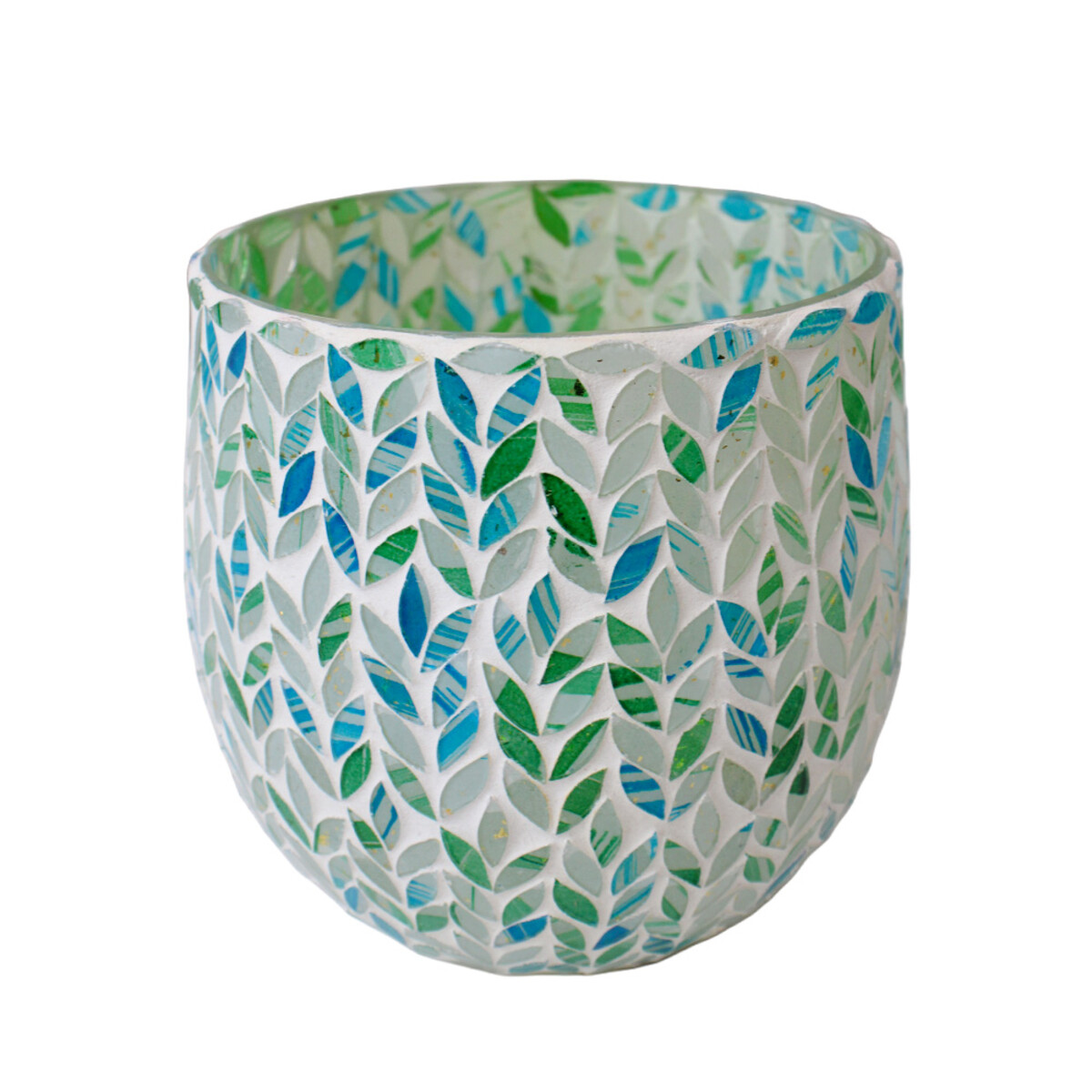 We’re talking about mixed blues here, but we see a pop of green in there too. The way the blue and green play off against that white background is something we haven’t seen everywhere. That handcrafted finish means no two are identical, and it's one of the things that makes this so much more than just another colourful glass vase/lantern.